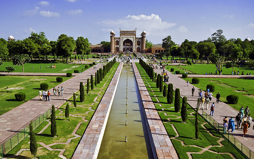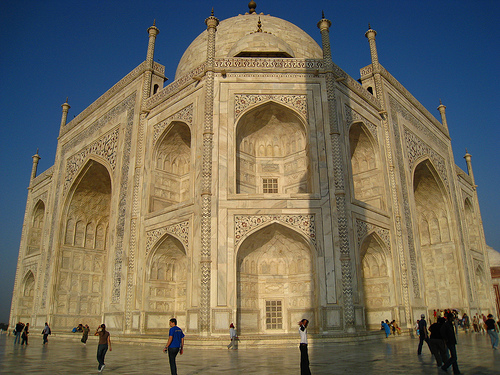 A Taj Mahal építése 1632-ben kezdődött a fővárosban Agrában a Yamuna folyó partján. A gyönyörű épület tervezői között több név is felmerül. Némely források Geronimo Veroneo itáliai építész művének tartják, amit alátámaszt, hogy Veroneo valóban sokáig élt Agrában és itáliai vonásokat is hordoz az épület. Egy másik történet szerint az építész Ahmad Lahori volt, akinek az uralkodó megölette a feleségét, hogy jobban átérezze az ő fájdalmát, majd az építkezés befejezése után Lahorit megvakíttatta, hogy soha ne építhessen még egy ilyen csodálatos épületet.